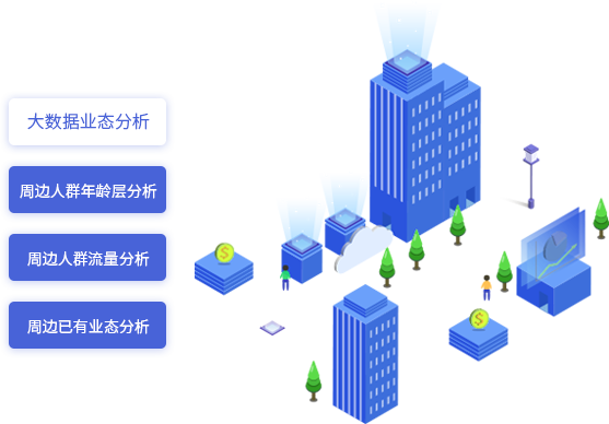 多渠道发布招商信息,大数据分析周边优势业态,通过智能化分析,为管理层提供数据决策依据,使招商工作人员更好的开展工作。